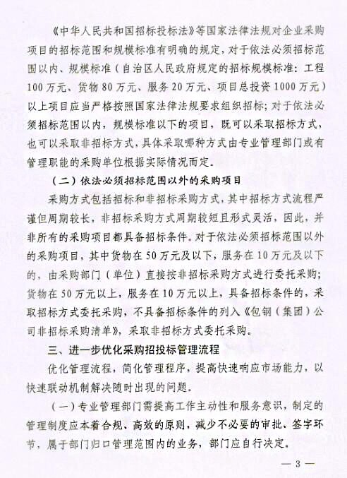 關(guān)于印發(fā)《包鋼(集團)公司關(guān)于進一步強化采購招投標(biāo)管理實施辦法(試行)》的通知