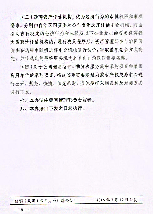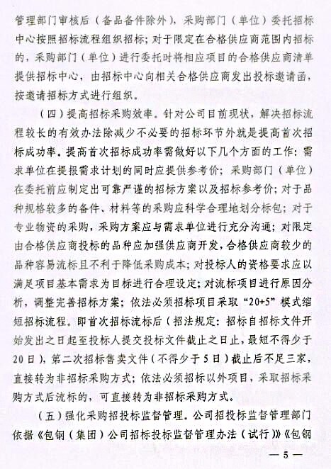 下一條:關(guān)于印發(fā)《包鋼(集團)公司關(guān)于進一步強化采購招投標(biāo)管理實施辦法(試行)》的通知